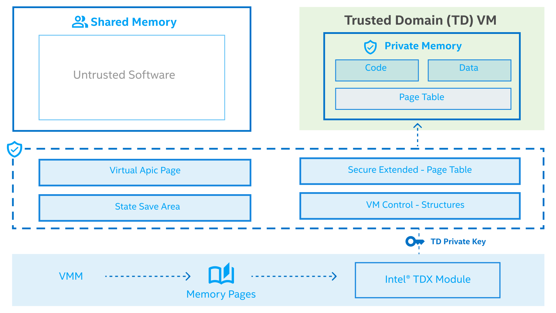 This hardware-based trusted execution environment (TEE) facilitates the deployment of trust domains (TD), which are hardware-isolated virtual machines (VM) designed to protect sensitive data and applications from unauthorized access.
